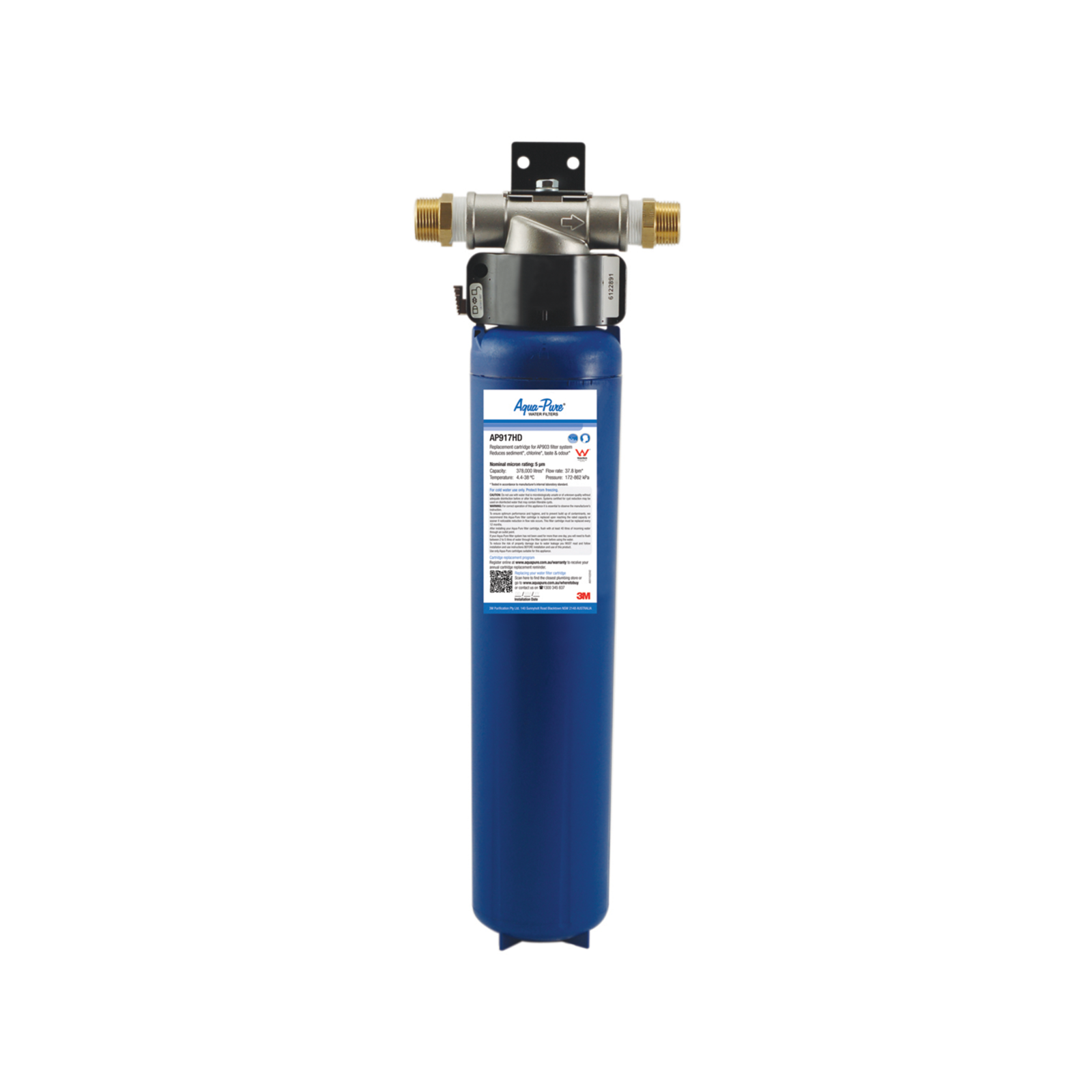 The 3M Aqua-Pure AP903 Whole of House Water Filter System is ideal for whole of house applications. Featuring an AP917HD cartridge, a Sanitary Quick Change cartridge, it is as simple as changing a light bulb. It filters and reduces sediment (dirt and rust), chlorine, taste and odour up to 5 nominal microns.