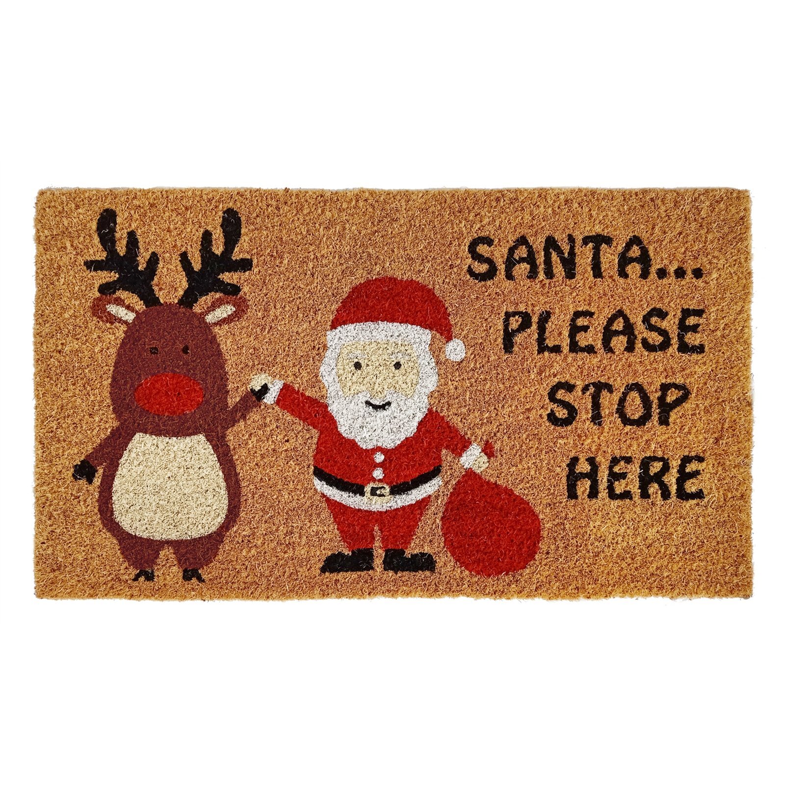 About: 70 x 40cm 'Santa Stop Here' Outdoor Coir Mat