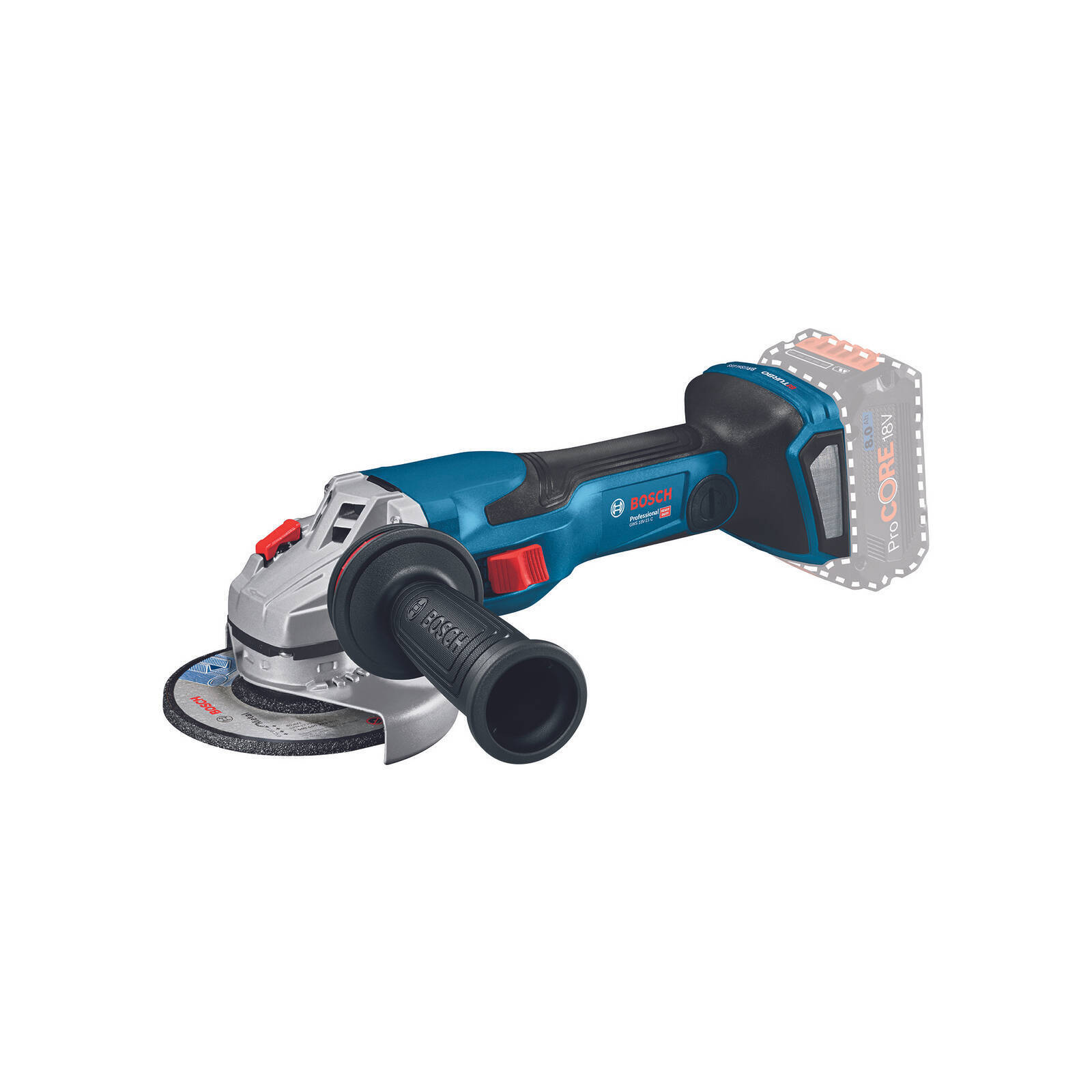 The GWS 18V-15 C Professional is Bosch´s high-performing cordless grinder that offers industrial power in the 18 V category. It delivers cordless power equal to a 1,500 W corded grinder due to its strong brushless motor that is fully optimised for ProCORE18V battery technology, making use of the battery´s complete power. The tool can be refitted with an optional Bluetooth Connectivity module. Equipped with KickBack Control, Drop Control, an intelligent brake system, and a tool-free quick clampin