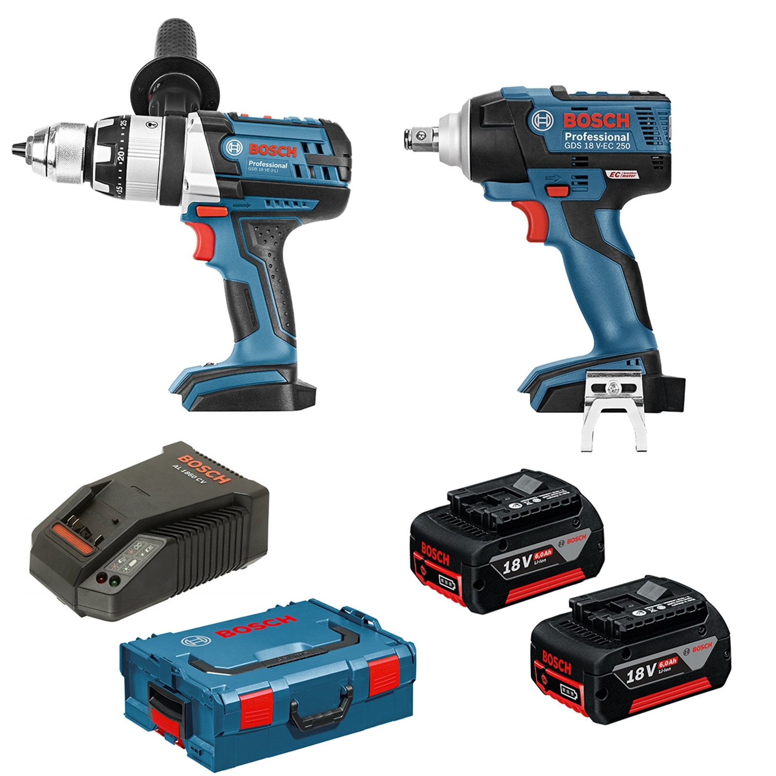 <p>The Bosch Blue 18V DBW 2-P EC 6.0Ah Cordless kit contains: <br>GSB 18 VE-2-LI Destroyer is extremely powerful built for the toughest screw driving and drilling applications. Extremely robust<br>and compact being fully functional even after dropping 2m onto concrete.<br><br>GWS 18V-LI DMS Angle Grinder has more power up to max. 250 Nm in forward and reverse rotation. With a longer lifetime due to brushless EC motor technology and high-performance gearbox and compact design with head length of