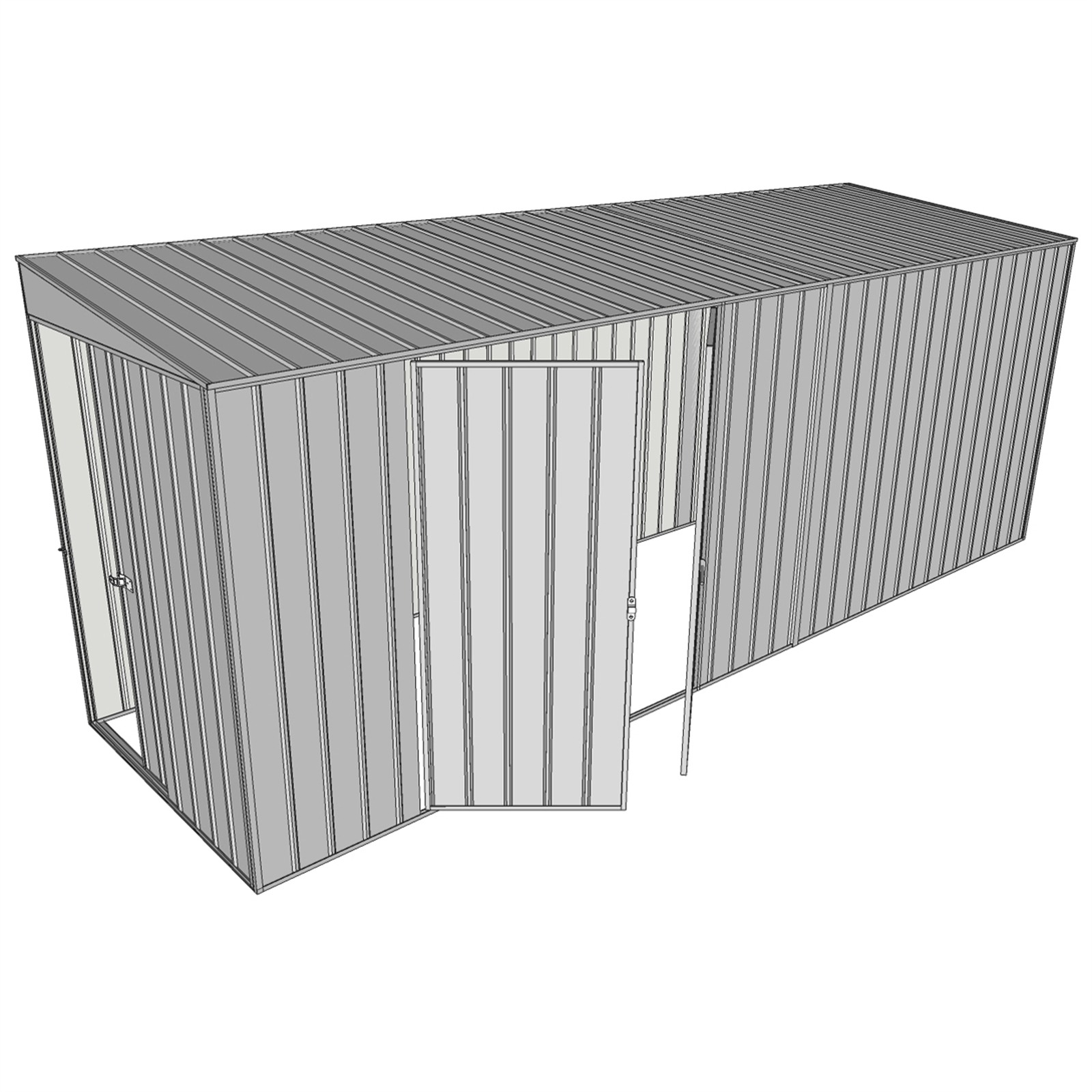 Build-a-Shed 0.8 x 4.5 x 2m Skillion Single Hinged Door Shed with Double Hinged Side Doors - Zinc