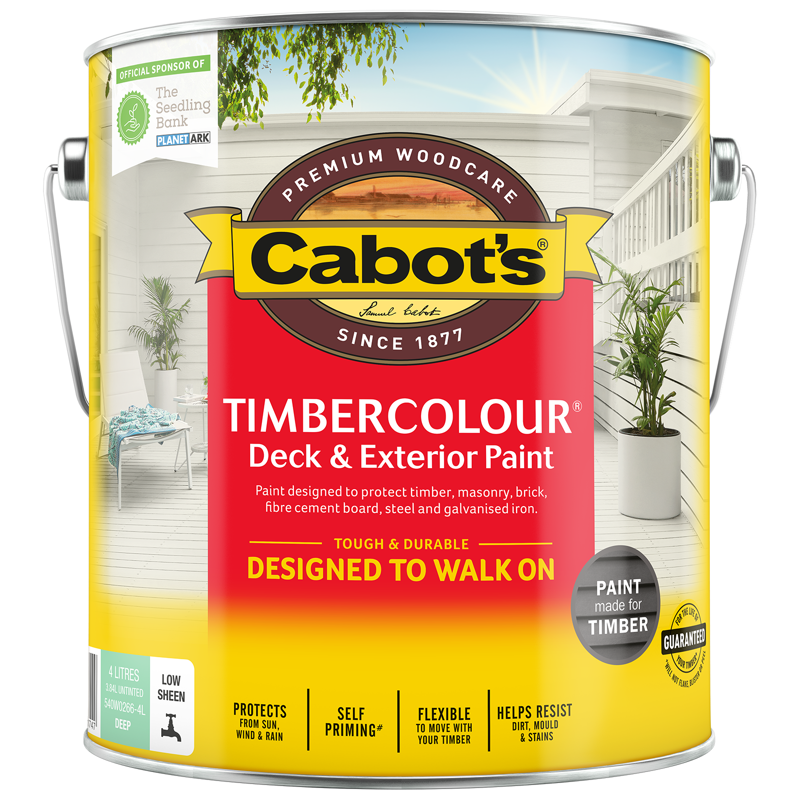 Cabot's Timbercolour® is your go-to exterior timber paint that is guaranteed to never flake, peel or blister*. It is tough and durable, designed to walk on and is self-priming on most surfaces. It's timber paint that provides colour that lasts, alongside long-life protection from all Australian weather conditions. Tint to over 1000 colours available, including popular Colorbond® colours. *If applied according to the specified application and maintenance instructions.