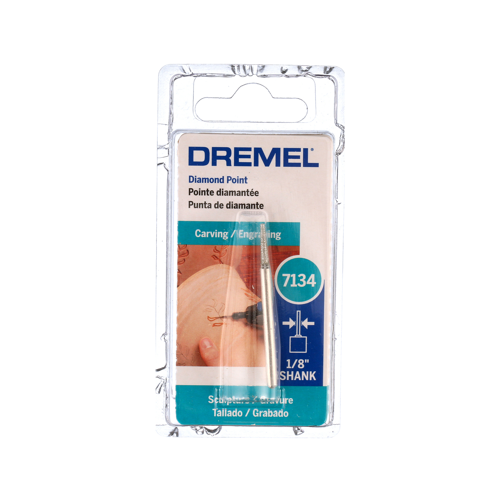 Thin Flat Head Dremel Diamond Wheel Point (2.0mm) for carving and engraving in hard material. The Dremel Diamond Wheel Point 2.0mm (7134) is ideal for fine detail work, cutting, engraving, carving, touch-up and finishing on wood, jade, ceramic, glass, hardened steel, semi-precious stones and other hard materials. The Dremel Diamond Wheel Point 2.0mm (7134) is completely coated with fine diamond particles for working with hard materials. The diamond coating adds durability and longevity, while p