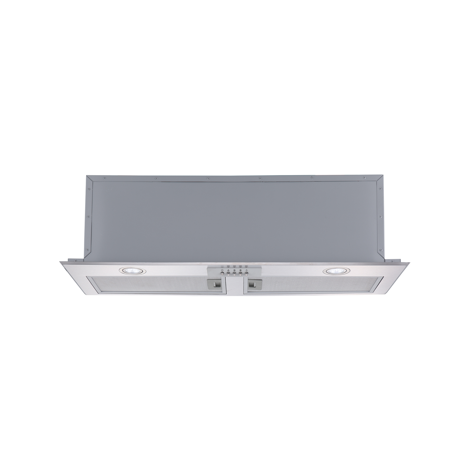 This 90cm Undermount Rangehood is ideal for keeping your kitchen air fresh while cooking, with air flow levels of up to 900m3/h. It has three speeds, and easy button control. The aluminium grease filter and 150 mm air outlet help clean and cycle the air, while the two LED lights provide ample visibility when cooking. When installing this appliance, it can be either vent odours and dirty air directly outside, or recirculate cleaned air using charcoal filters.
