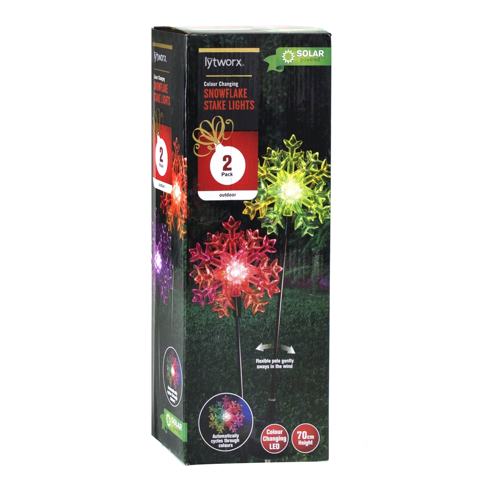 About: Lytworx 70cm Colour Changing Solar Snowflake Stake Lights - 2 Pack