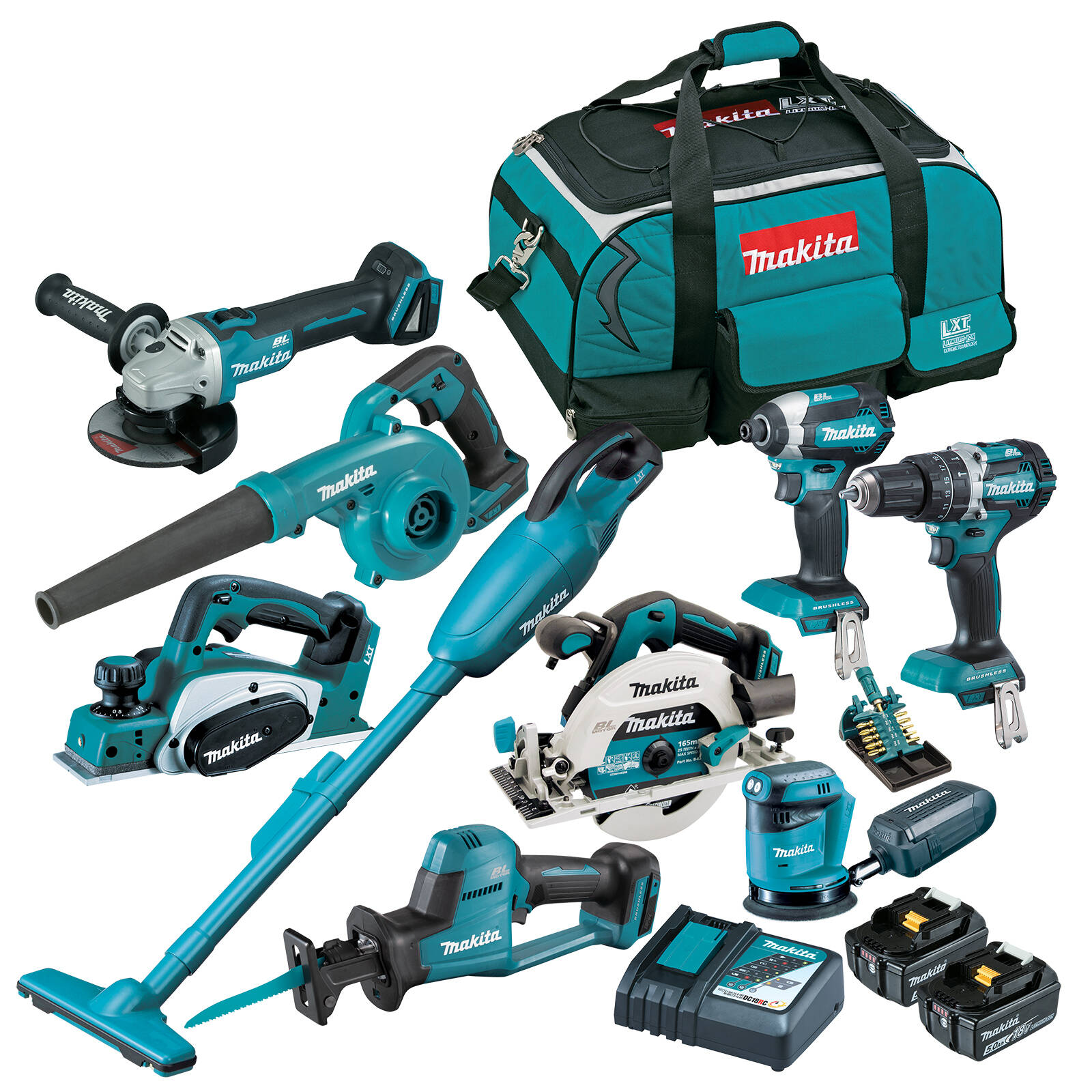 9 essential tools for any tool box including a number of Makita-built brushless motors that eliminate carbon brushes and run contact-free, enabling the motor to run cooler and more efficiently for longer life. The electronically controlled brushless motor efficiently uses energy to match torque and speed to the changing demands of the application. Tool users who unplug the cord with Makita 18V LXT experience new items of convenience, efficiency and productivity. Makita’s leading technology giv