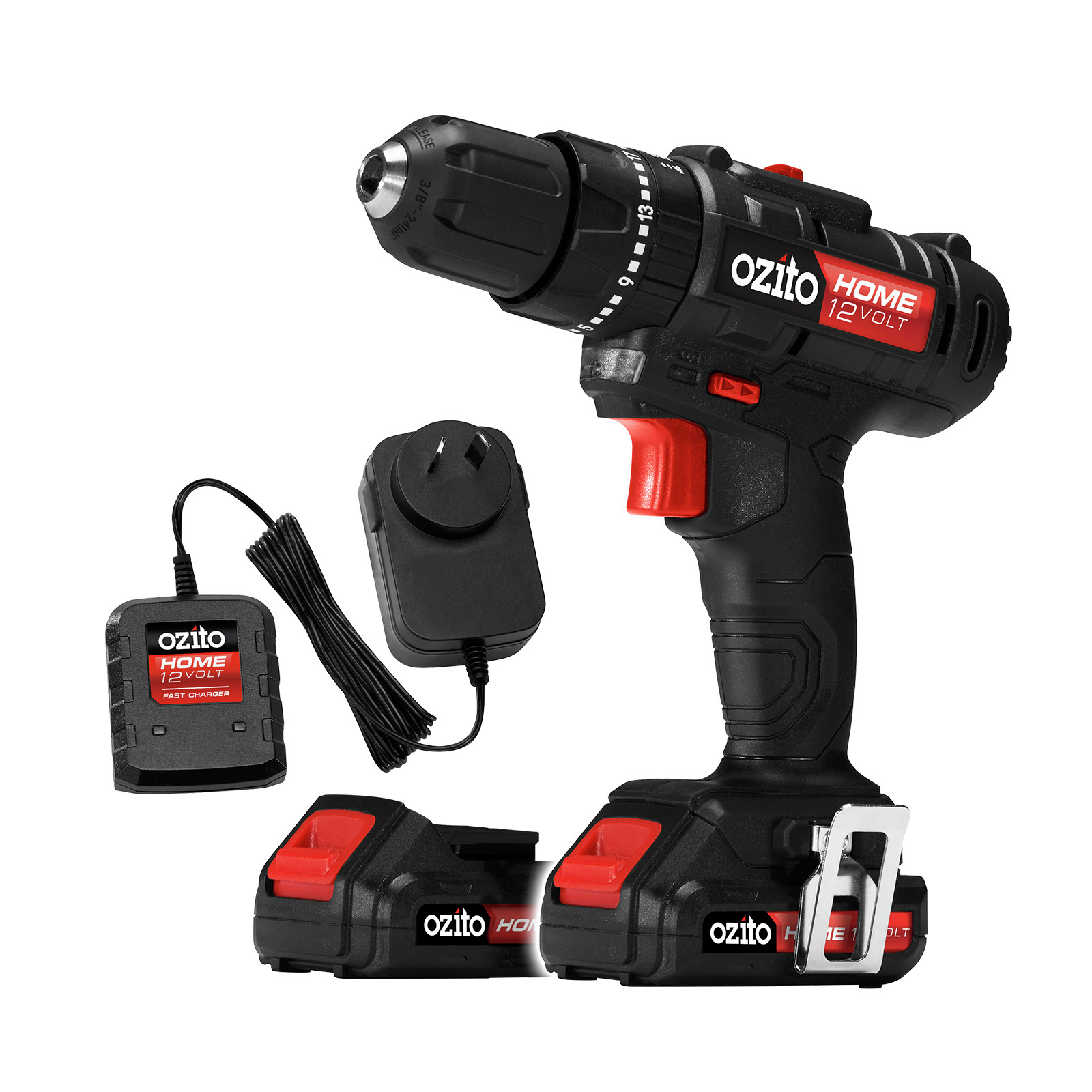Get your Ozito Home 12 Volt range started with this 12V Hammer Drill Kit. The perfect tool to have in your tool kit to complete a wide range of drilling and driving tasks.<br><br>Drill holes into timber and metal, drive screws and hammer drill into masonry. The 2 speed gearbox allows you to select the preferred operating speed, slow for more toque while driving or fast for drilling.<br><br>The 2 included 1.5Ah batteries and fast charger are compatible with all the tools from the Home 12 Volt Ran
