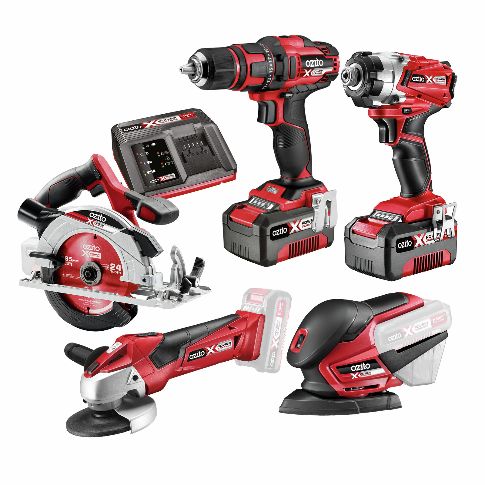 Get started on your next D.I.Y. project with this cordless 5 piece kit from Ozito’s 18V Power X Change range. With two 3.0Ah batteries and fast charger included, you can cut timber to size with the powerful circular saw; drill holes and fasten screws in timber, plastics and metals with the drill and impact drivers, finish surfaces with the detail sander and grind down metal edges and bolts with the angle grinder. Short on ideas? We’ve included some easy DIY instructions to get you started with