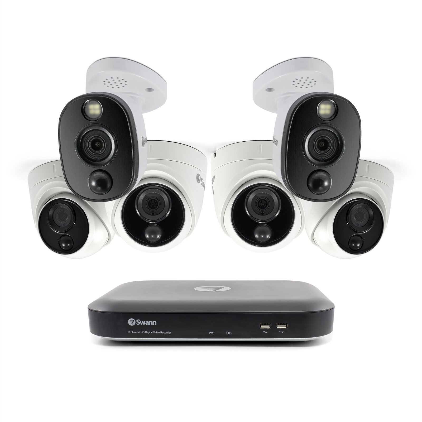 Swann 6 Camera 8 Channel 4K Ultra HD DVR Security System (Plain Box Packaging)<br>DVR-5580 with 2TB HDD & 6 x 4K Heat & Motion Detection Security Cameras PRO-4KDOME, PRO-4KWLB<br>SODVK-855804D2WL<br><br>Peace of Mind From Every Angle<br><br>Reliable Wired Connection<br>Protect your loved ones & property with this multi-camera, wired surveillance system with everything you need to do-it-yourself or have it professionally installed<br><br>See More in 4K Ultra HD<br>Zoom into faces & license plates