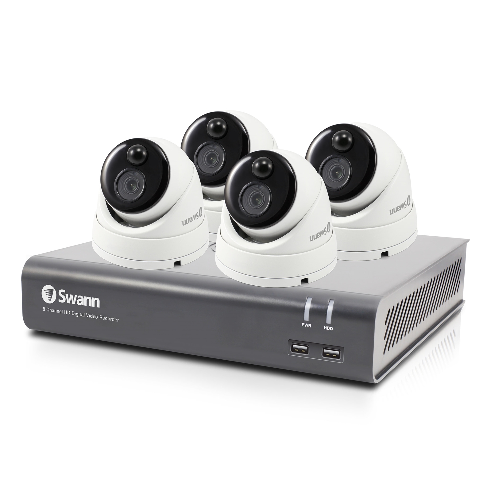 Protect your loved ones & property with this multi-camera, wired surveillance system with everything you need to do-it-yourself or have it professionally installed.<br><br>Full HD 1080p resolution lets you zoom in to discern important details which are essential for evidence, such as faces & license plates.<br><br>Know what’s happening at any hour with powerful night vision up to 100ft/30m & the ability to mount the cameras inside or outside.<br><br>Swann’s True Detect™ heat & motion detection r