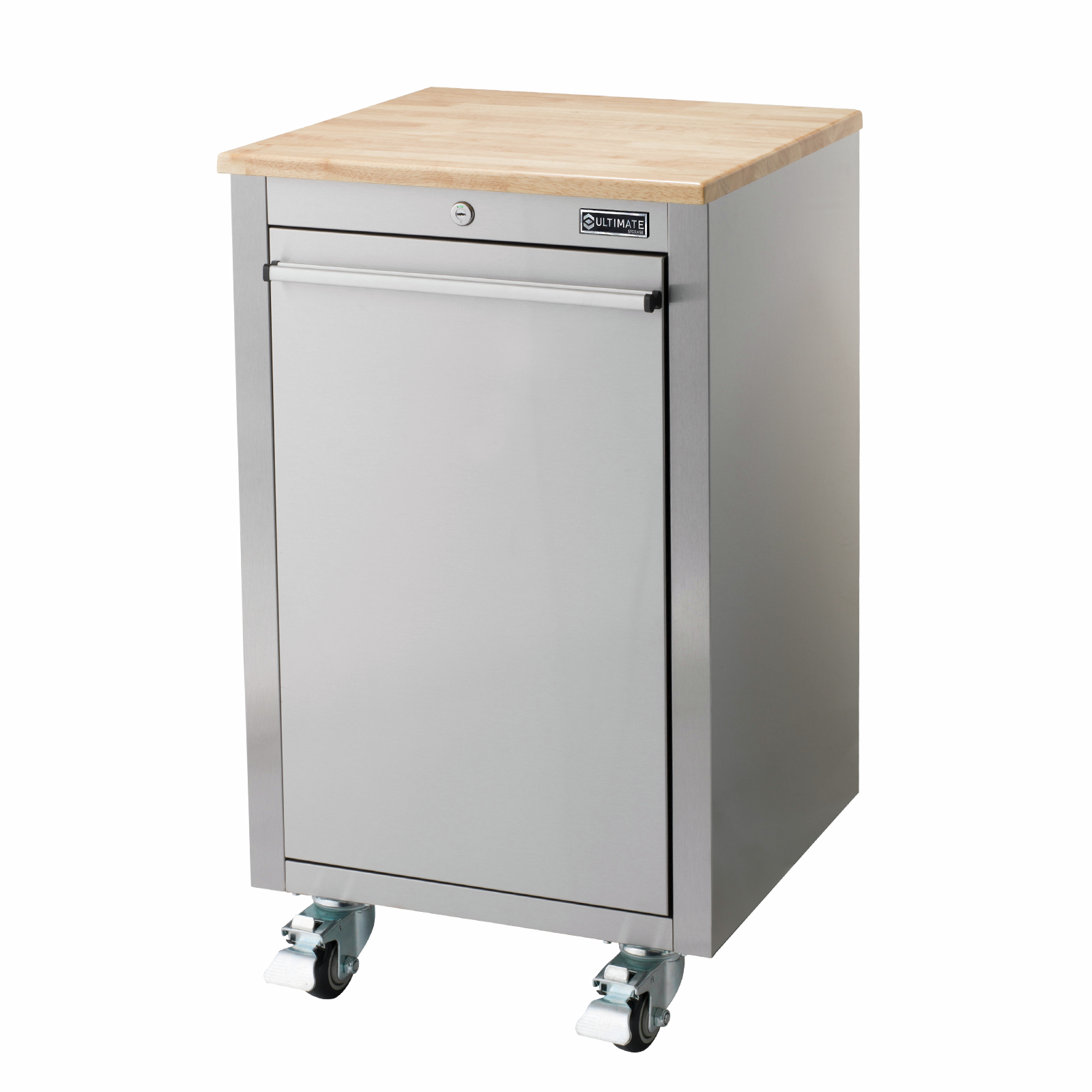 Stainless steel tool chest with 1 narrow drawer. Aluminium extruded handle design. Heavy duty castors with front two locking. Deep drawer for large storage or bin use. Keys lockable with keys included.